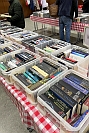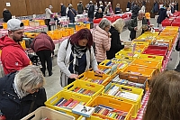 Alle Bücher wurden in Kunststoffkisten gut sortiert angeboten. Ebenfalls wurden Spiele, Hörbücher, DVDs und CDs zu kleinen Preisen verkauft. Am Ende des Tages haben rund 1.600 Bücher und Medien einen neuen Besitzer gefunden und bekamen so ein neues Leben geschenkt.