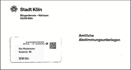 Die ausgefüllten Unterlagen, also der Abstimmungsbrief, muss bis spätestens 19. April 2026, 16 Uhr, beim Wahlamt der Stadt Köln