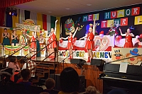 Lionel Moritz brachte mit „Loss mer Springe “ die erste Gesangsdarbietung des Tages auf die Bühne und brachte die kleinen Gästen im Saal des Vereinshauses zum Springen und Mitsingen. Das Kindertanzkorps der Grossen KG unter der Leitung von Nadine Flögel und Vanessa Thoma präsentierte im Anschluss einen Tanz, der Präzision und Gefühl wunderbar verband. Jede Drehung und jeder Sprung wurden vom Publikum mit großem Beifall gefeiert. Für die Büttenrede des Tages trat erstmals Fabian Pitzler ans Mikrofon – und was für ein Debüt. Mit „Fabi erzählt von der Schule“ brachte er die Gäste reihenweise zum Lachen, besonders natürlich Prinz Michael II., der als Lehrer viele Witze nur zu gut kannte. Das Jugendtanzkorps „Rude Papageie“ zeigte danach, warum es seinen farbenfrohen Namen trägt: Ein energiegeladener, lebendiger Tanz wie von Papageien, der die Zuschauer sofort mitriss. Im Sketch der Gäste von der „Dramatischen Jugend“ bewiesen Bea Wolter und Mara Neubersch, dass Humor keine Altersfrage ist. Die beiden spielten sich