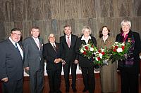 v. li.: Reinhold Campinge, Werner Hirschler, Elio Pulerá, OB Jürgen Roters, Margret Schneider, Renate Sokoll und Eva Zobel