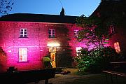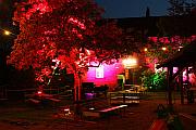 Ausbildungsplätze anbieten kann. Für die Budgarten-Illumination im Krebelshof zeichneten denn auch die Azubis verantwortlich, die in 15-minütigem Wechsel den Biergarten vorwiegend in die Farben grün, lila und rot tauchten. 3 City-Colours für die Gebäudebeleuchtung, 500 m Kabel, 10 Kilowatt gesicherter Strom und 22 Floor-Spots für Sträucher und Bäume sorgten für Farbakzente, bei denen man schnell vergessen konnte, dass die ersten 111 Budweiser für die Gäste kostenlos waren.