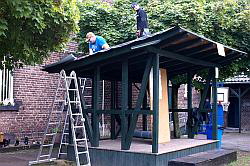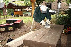 Hofgartens abgerissen und die Materialien teilweise für Bastelaktionen mit Jugendlichen eingelagert; die Spielhäuschen wurden neu bedacht, sämtliche Tische und Bänke abgeschliffen und neu gestrichen, die Bühne im Innenhof geschliffen, gestrichen und mit neuer Dachpappe versehen. Weiterhin entrümpelte das Ford-Team das Baulager hinter dem Parkplatz, erneuerte den Sichtschutz am Zaun, befüllte die Blumeninseln auf dem Parkplatz mit frischem Mutterboden. Ein Innenraum des „Gesindehauses“ erhielt einen neuen Anstrich.
