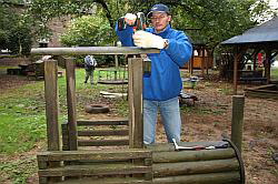 Ford Aktionstag Drei Tage nach Neueröffnung des Krebelshofs war es so weit. Am 16. September 2013 traf ein Team -bestehend aus rund 50 Mitarbeitern und Mitarbeiterinnen der Kölner Ford-Werke (sowie Manager und Europa-Vorstand)- früh morgens voller Tatendrang auf dem Krebelshof ein. Nach einem kurzen Rundgang, Einteilung und Einweisung bei Kaffee und Brötchen ging es zügig los. Auch während der Regenphasen schafften die motivierten Fordler eine Menge, nicht zuletzt dank der guten Organisation des Krebelshof-Teams. Zahlreiche nicht mehr intakte Spielgeräte wurden im Bereich des
