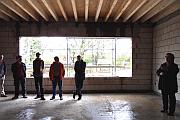 „Wir haben uns für ein Bergfest entschieden, weil der Dachstuhl bereits fertig ist und somit ein Richtfest nicht mehr in Frage kommt“, so Frau Fischer, die aus Sicherheitsgründen nur Architekt Norbert Güsgen, Handwerkerfirmen, Träger, Fachberater, Elternrat und Bistumsvertreter am Bau begrüßen konnte. Und tatsächlich, die KiTa ist in ihrem jetzigen Zustand nicht als solche wieder zu erkennen, der Umbau ist gravierend und die Begehung mit Kindern wäre sicher zu gefährlich.