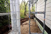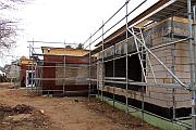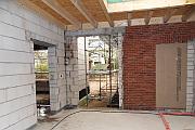 Im zukünftigen Turnraum, der sich als solcher nur erahnen lässt, bilden sich z. Zt. noch Pfützen vom Regen, der sich durch das provisorische Dach drängelt. Skeptische Blicke. Doch das hat alles seine Richtigkeit. Die Umbau- und Erweiterungsmaßnahmen sind sehr umfassend. Das gesamte Projekt ist in den Rohbauzustand zurückgesetzt worden, erklärt Architekt Norbert Güsgen. Energetische Maßnahmen wie Fußbodenheizung, Wärmedämmung, neue Fenster und die auf dem Dach integrierte Luftwärmepumpe sind nur einige der Maßnahmen, die die KiTa in ein hoch modernes Betreuungsprojekt umwandeln. Für die 62 Kinder wird es die wahre Wonne sein, mit Socken auf dem dann immer warmen Boden laufen zu können. Die KiTa plant zu den bisherigen zwei U3 Gruppen, ab dem Kindergartenjahr 2013 die Umwandlung einer dritten- reinen Kindergartengruppe- in eine Gruppe der Gruppenform II (Kinder ab 1/2 Jahr) umzuwandeln. Neben den großflächigen Umbaumaßnahmen erhält die