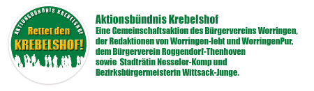 Köln-Worringen Nach der Schließung des Jugend- und Kulturzentrums Krebelshof durch das Kölner Jugendamt gründete sich auf Initiative der örtlichen Internetredaktionen WorringenPur und worringen-lebt das „Aktionsbündnis Krebelshof“. Die Bürgervereine aus Worringen, Roggendorf/Thenhoven, Stadträtin Nesseler Komp und Bezirksbürgermeisterin Wittsack-Junge schlossen sich dem Bündnis an und erklärten zum gemeinsamen Ziel die Stadt Köln davon zu überzeugen, wie wichtig der Erhalt des Krebelshofs als Jugend- und Kulturzentrum ist.