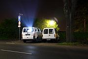 Die Vorarbeiten dazu mussten allerdings in der Nacht zuvor, am Donnerstag geleistet werden. Von 22 Uhr bis 4 Uhr wurden zunächst die Motive am Häuserblock 170 – 178 „Max und Moritz beim Ansägen der Brücke“ und „Schneider Böck beim Überqueren der Brücke“ per Beamer an die straßenseitig gelegene Giebelfassade projiziert, um die Konturen anzeichnen zu können. Dabei warf das Gerüst einen 30 cm breiten Schatten auf die Gesichter der Lausbuben, die daher erst im Hellen bearbeitet werden konnten. Begeistert zeigte man sich von der Hilfsbereitschaft der Worringer, die die Arbeiter nachts mit heißem Kaffee versorgten und der gegenüberliegenden Nachbarschaft, die 3 m fehlendes Stromkabel ausliehen, sodass die Arbeiten nicht ins Stocken gerieten.