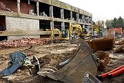 Ende Oktober 2010 ist zumindest die Zukunft des Hallenbadgrundstücks gewiss. Nach der bereits erfolgten Baum- und Grünrodung entstehen hier durch die Fa. Heinrich Wengerter Bau GmbH innerhalb von 10 Monaten 12 Einfamilienhäuser, die 55 % weniger Energie verbrauchen werden, als es die aktuelle Energieeinsparverordnung vorschreibt. Eine zentrale Pelletheizung, kontrollierte Wohnraumbelüftung und hohe Wärmedämmung sind die wesentlichen Merkmale, die auf 140 m² Wohnfläche (plus 30 m² Nutzfläche plus großer Garten) das Herz eines jeden Häuslebauers höher schlagen lassen. Dass Kanalisation, Nahwärmenetz und Elektrik bereits vorbereitet sind, versteht sich nicht immer von selbst. Bis Dezember soll der Abbruch des Hallenbadgebäudes beendet sein und die stattdessen geplanten Gärten an gleicher Stelle treppenförmig der „Bruchebene“ angepasst werden. Die nunmehr einreihige Bebauung ist in zwei Abschnitte mit je 8 und 4 Häusern angedacht. Der Kaufpreis lag bei 140 m² Wohnfläche mit 30 m² Nutzfläche plus Garten bei 190 Tsd. Euro für ein Mittelhaus und 229 Tsd. Euro für ein Endhaus – alle Häuser sind jedoch bereits verkauft.