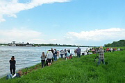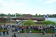 den 13. Mai passierte es Worringen, wo es von vielen in der Rheinaue bestaunt wurde. Neben den gerade wieder eingetroffenen Rindern eine kurzfristige Attraktion. In Köln lag das U- Boot eine Nacht an der Bastei.