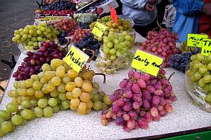 Wein gekeltert. Ganzjährig bekommen wir Tafeltrauben aus Südeuropa, Chile,