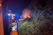 Fahrzeug auf der St. Tönnisstraße in Höhe der Bruchstraße während der Fahrt aus bisher noch ungeklärter Ursache zu brennen begonnen hatte. Bei Eintreffen der Löschgruppe stand der Wagen in Vollbrand. Der PKW wurde durch den unter Atemschutz vorgehenden Angriffstrupp Roggendorf abgelöscht und heruntergekühlt. Gleichwohl entstand auf Grund der Brandeinwirkung ein Totalschaden an dem Fahrzeug. Die Straße musste auf Grund der Rauchentwicklung kurzfristig gesperrt werden. Nach gut einer Stunde konnten die 10 Mitglieder der Löschgruppe wieder einrücken.