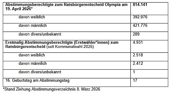 Abstimmungsberechtigte zum Ratsbürgerentscheid Olympia am 19. April 2026*