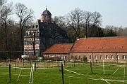 sieht man auch den alten Grenzstein Hackenbroich /Köln. Der nächste Ort ist Hackhausen (seit 1080). Am Ende dieses Weges steht wieder ein Grenzstein und eine kleine Kapelle. Wir biegen nach links Richtung Roggendorf ab. Rund um Hackhausen sieht man eine Pferdeweide neben der anderen. Südlich von hier sollte vor 40 Jahren einmal die Pferderennbahn aus Weidenpesch hinziehen. Hier an der Schloß-Arff-Straße liegt auch das Schloß Arff. Es ist im Rokoko Stil erbaut und war früher ein Wasserschloß. Die Wassergräben wurden vom Pletschbach gespeist. Die Gräben sind heute zugeschüttet und auch das