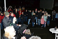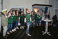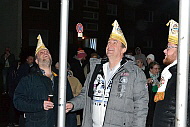 Traditionell wird die Fahne der Prinzengesellschaft als letzte Fahne gehisst und beschließt das Fahnenhissen. Alle Fahnen konnten ohne Probleme gehisst werden, was in der Vergangenheit nicht immer so war. Anschließend war es an der Zeit, dass Markus Drescher, als kommender Prinz, eine kleine Ansprache hielt. Im Anschluss wurde noch der Prinzenschlager von Heinz Laufenberg gesungen. Leider musste er das allein machen, weil sein Duett-Partner erkrankt war. Bei dem ein oder anderen Kaltgetränk und Grillwürstchen neigte sich der Abend dem Ende zu.