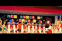 Lionel Moritz brachte mit „Loss mer Springe “ die erste Gesangsdarbietung des Tages auf die Bühne und brachte die kleinen Gästen im Saal des Vereinshauses zum Springen und Mitsingen. Das Kindertanzkorps der Grossen KG unter der Leitung von Nadine Flögel und Vanessa Thoma präsentierte im Anschluss einen Tanz, der Präzision und Gefühl wunderbar verband. Jede Drehung und jeder Sprung wurden vom Publikum mit großem Beifall gefeiert. Für die Büttenrede des Tages trat erstmals Fabian Pitzler ans Mikrofon – und was für ein Debüt. Mit „Fabi erzählt von der Schule“ brachte er die Gäste reihenweise zum Lachen, besonders natürlich Prinz Michael II., der als Lehrer viele Witze nur zu gut kannte. Das Jugendtanzkorps „Rude Papageie“ zeigte danach, warum es seinen farbenfrohen Namen trägt: Ein energiegeladener, lebendiger Tanz wie von Papageien, der die Zuschauer sofort mitriss. Im Sketch der Gäste von der „Dramatischen Jugend“ bewiesen Bea Wolter und Mara Neubersch, dass Humor keine Altersfrage ist. Die beiden spielten sich