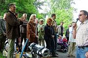 Treffpunkt für die zweite von Frau Hötzel durchgeführte Historische Führung, war für rund 50 Interessierte das Wegkreuz an der Ecke Sinnersdorfer Str./Alte Straße, das sich in unmittelbarer Nähe des alten Trafohäuschens befindet und auch als Bergerkreuz bekannt ist.