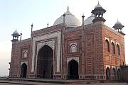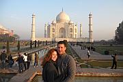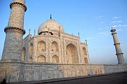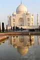 Das Taj Mahal ist ein 58 Meter hohes und 56 Meter breites Mausoleum und wurde durch Großmogul Shah Jahan in Gedenken seiner im Jahre 1631 verstorbenen Hauptfrau Mumtaz Mahal auf einer 100 Meter x 100 Meter großen Marmorplattform errichtet. Über 20.000 Handwerker und über 1000 Elefanten wurden für den Bau benötigt. Der Hauptbestandteil ist Marmor, versehen mit über 28 verschiedenen Arten Edelsteinen und Halbedelsteinen. Vor dem Mausoleum wurde ein 18 Hektar großer Garten angelegt, in dessen Zentrum sich ein längliches Wasserbecken
