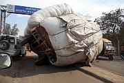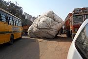 gerieten wir (wie so häufig) in einen Stau und es ging nur schleppend voran. Notfalls wird halt auch mal in den Gegenverkehr ausgewichen. Nach kurzer Zeit erkannten wir auch, weshalb dieser Stau verursacht wurde! Mitten auf der Straße, zwischen linker und rechter Spur, war ein völlig überladener Anhänger umgekippt und lag wohl auch schon länger dort. Von der Zugmaschine war weit und breit nichts zu sehen! Ganz brav, als ob es das Normalste der Welt wäre, fuhren alle Verkehrsteilnehmer um den Karren herum. Es regte sich niemand auf (zur Info: Hupen gehört in Indien nicht zum „Aufregen“, sondern zur allgemeinen Information „Vorsicht, hier komme ich!“). Aber auch niemand machte sich wohl die Mühe dieses Verkehrshindernis aus dem Weg zu räumen! Selbst ein Verkehrspolizist ein paar Meter weiter, versuchte das Chaos mit ein paar Handbewegungen, die eh niemand zu beachten schien, einzugrenzen, aber nicht zu beheben. Es würde mich nicht wundern, wenn der Karren da heute noch liegt! Gegen Ende des Tages besuchten wir noch eine Hindutempelanlage aus dem 11. und 12. Jahrhundert. Tempel an sich sind sehr schön, allerdings hat man irgendwann ein Déjà-vu. Irgendwie sind es immer wieder die gleichen. Man hat das Gefühl, kennt man einen, kennt man alle! Bereits am Eingang lief uns ein kleiner Junge hinterher und frage uns in Englisch, woher wir den kommen würden. Als wir ihm erzählten, dass wir aus Deutschland seien, zog er sofort einen Euro aus seiner Tasche und bat darum diesen in Rupie einzutauschen. Der Junge konnte