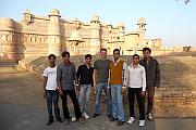 Anschließend fuhren wir zum roten Fort Agra. Das rote Fort ist eine Festungs- und Palastanlage und diente im 16. und 17. Jahrhundert den Mogulen als Residenz. Seit 1983 zählt es zum UNESCO-Weltkulturerbe. Von dort aus hätte man, wenn nicht gerade ein Dunstfilm über der Stadt gehangen hätte, einen schönen Blick auf das TajMahal von der Ferne gehabt. Weiter ging die Reise Richtung Gwalior. Auf dem Weg