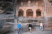 anhand unserer Herkunft das entsprechende Geldstück zuordnen. Und er hatte nicht nur Euros in der Tasche, sondern Münzen aus sämtlichen Ländern dieser Welt! Zu einem angemessenen Wechselkurs tat ich ihm den Gefallen und somit wechselte er freudestrahlend seinen Euro gegen Indische Rupie ein. In der Tempelanlage wurde ich auf einmal von einer Gruppe Inder umlagert. Schon ganz bange, dass man mir mal wieder etwas verkaufen möchte, musste ich jedoch feststellen, dass die in etwa gleichaltrigen jungen Inder einfach nur ein Foto mit mir machen wollten. Somit habe auch ich ein schönes Erinnerungsfoto machen können. Auf dem Weg zurück ins Tal sahen wir noch in den Fels geschlagene monumentale Figuren des Jainismus aus dem 15. Jahrhundert. In der Zeit, als die Moslems Indien überfielen, wurden den Figuren zum Teil Köpfe und Genitalien abgeschlagen.