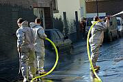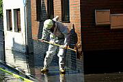 Anwohner Werner Schmidt, der als erster die Feuerwehr informierte, hatte sein Frühstück gerade mit seiner Frau Josi (bei geschlossenem Fenster! ) beendet, als er die Explosion hörte und den Schlamassel sah. „Es hätte zwar schlimmer kommen können, aber trotzdem ist es ein echter „scheiß“ Tag!“, so der Kundendiensttechniker, der an diesem „schwarzen Montag“ verständlicherweise nicht zur Arbeit gefahren ist.